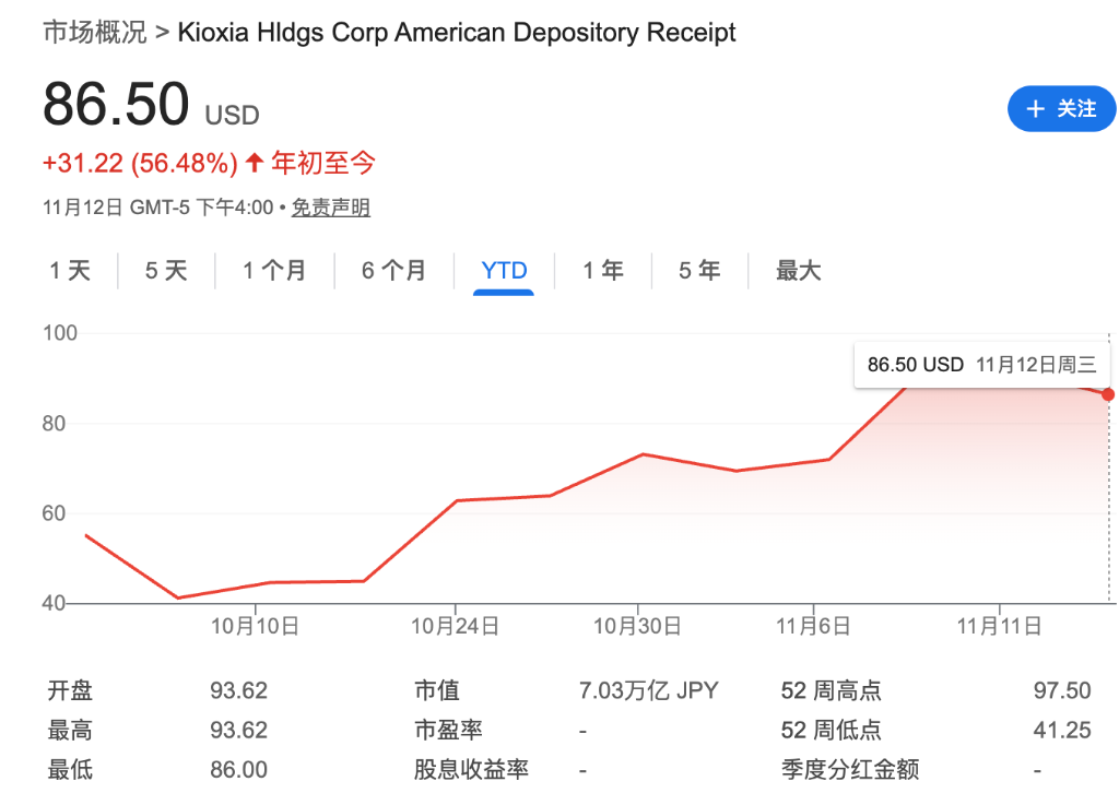 尽管短期盈利不及预期,市场对AI驱动下存储需求的长期前景仍持乐观态度,年初至今公司股价涨超56%。